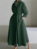Elegant Pocket Button Lapel Collar Fold Solid Midi Dress