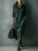 Green Loose Suede Lapel Long Sleeve Midi Dress