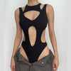 Mouwloze Rugloze Bodysuit Met Uitsnijdingen In Effen Kleur