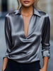 Solid Color Satin V-neck Long-sleeved Casual Shirt