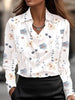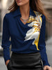 Solid Satin Floral Print Simple Swing Collar Shirt Top